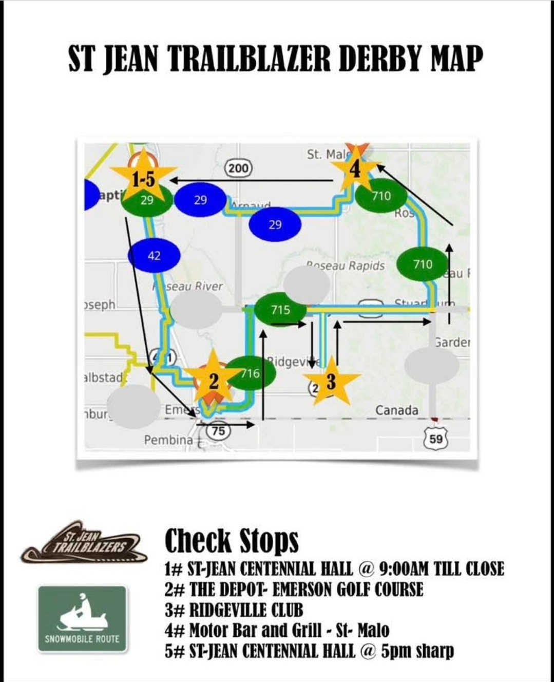 Derby Registration 9 am - close at the St Jean Centennial Hall - 203 Caron St. St Jean.